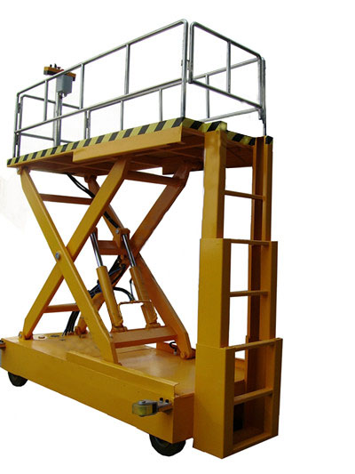 升降臺上裝配機動或電動輥道,實現(xiàn)物料升降及水平輸送。